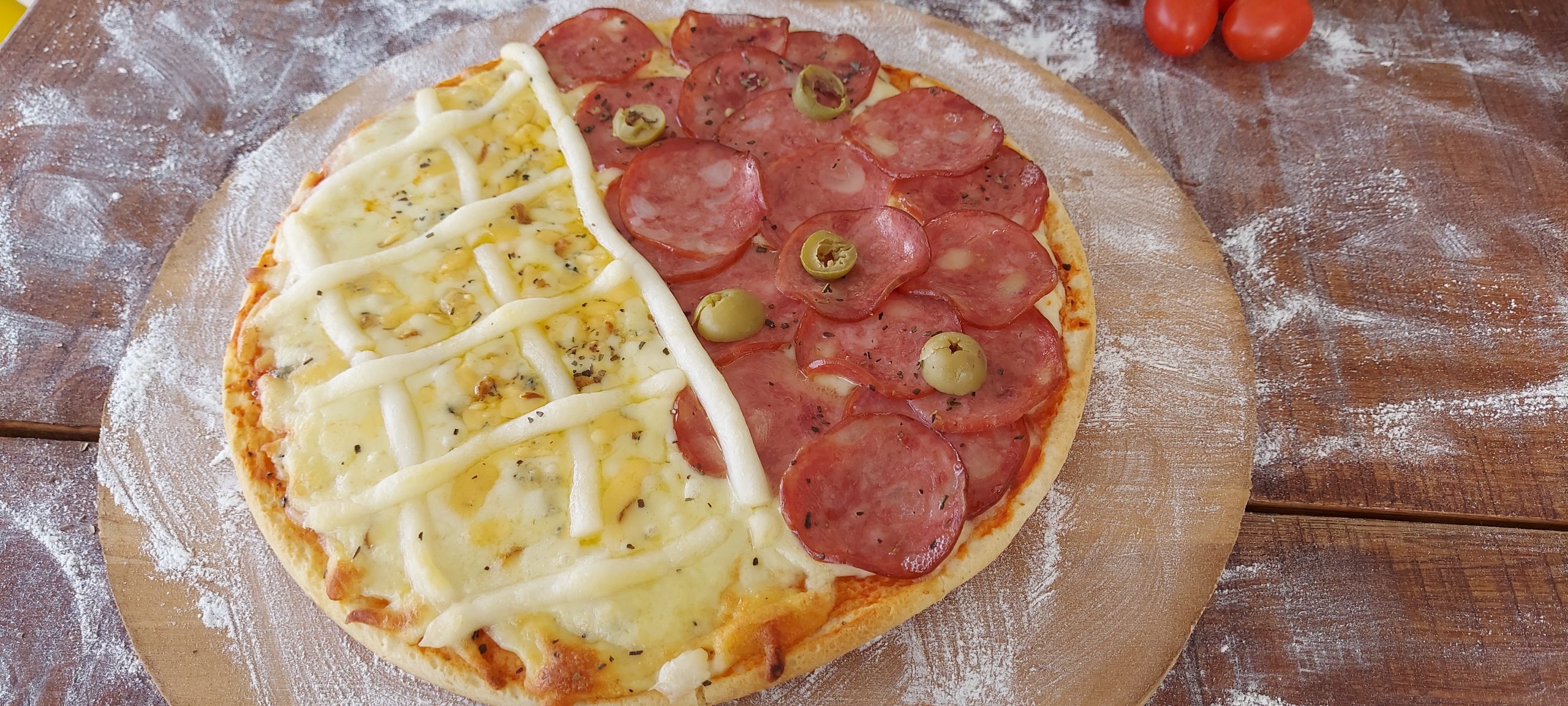 Pizza super recheada produzida com matéria-prima de qualidade!