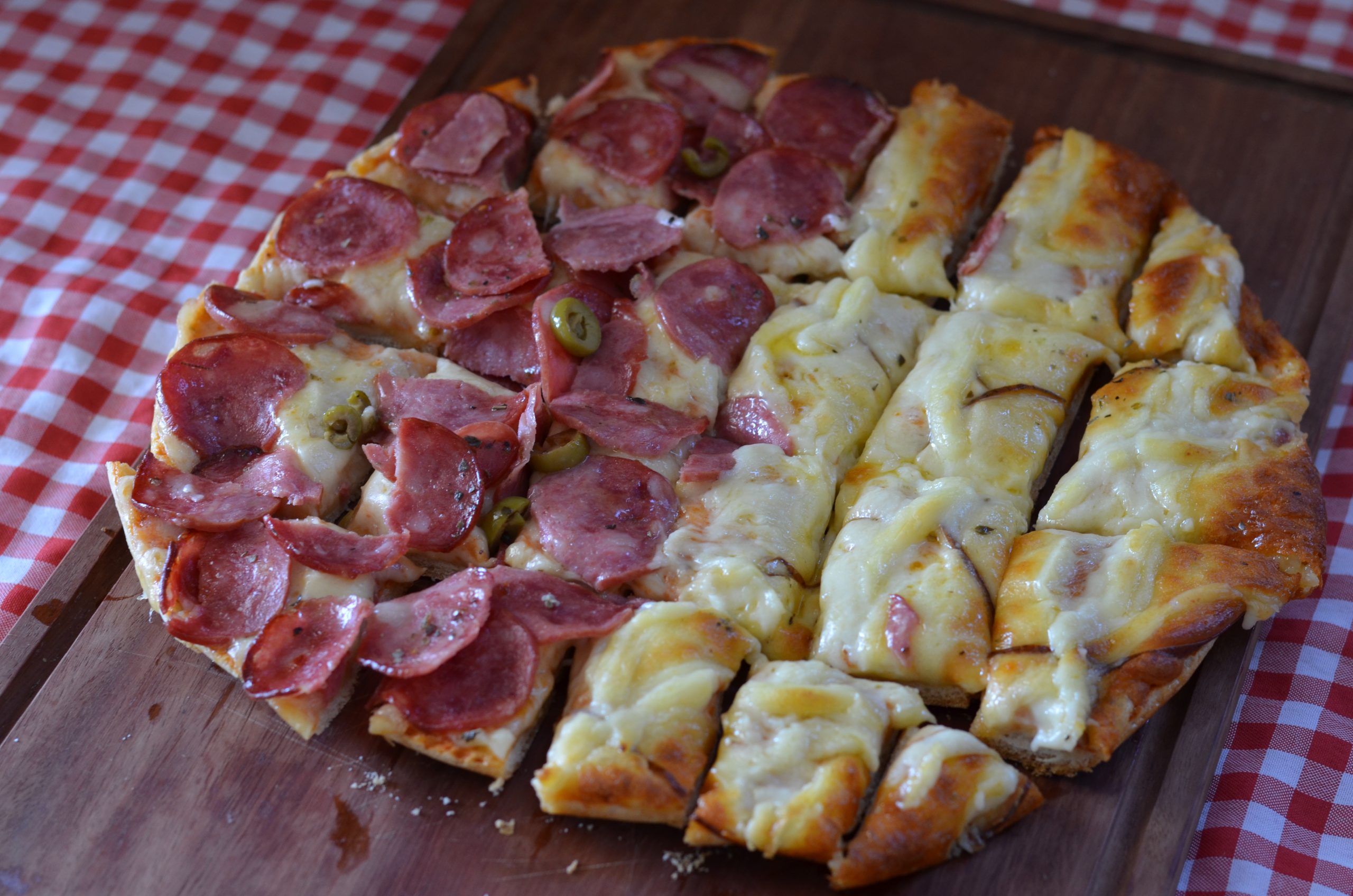 Pizza super recheada produzida com matéria-prima de qualidade!