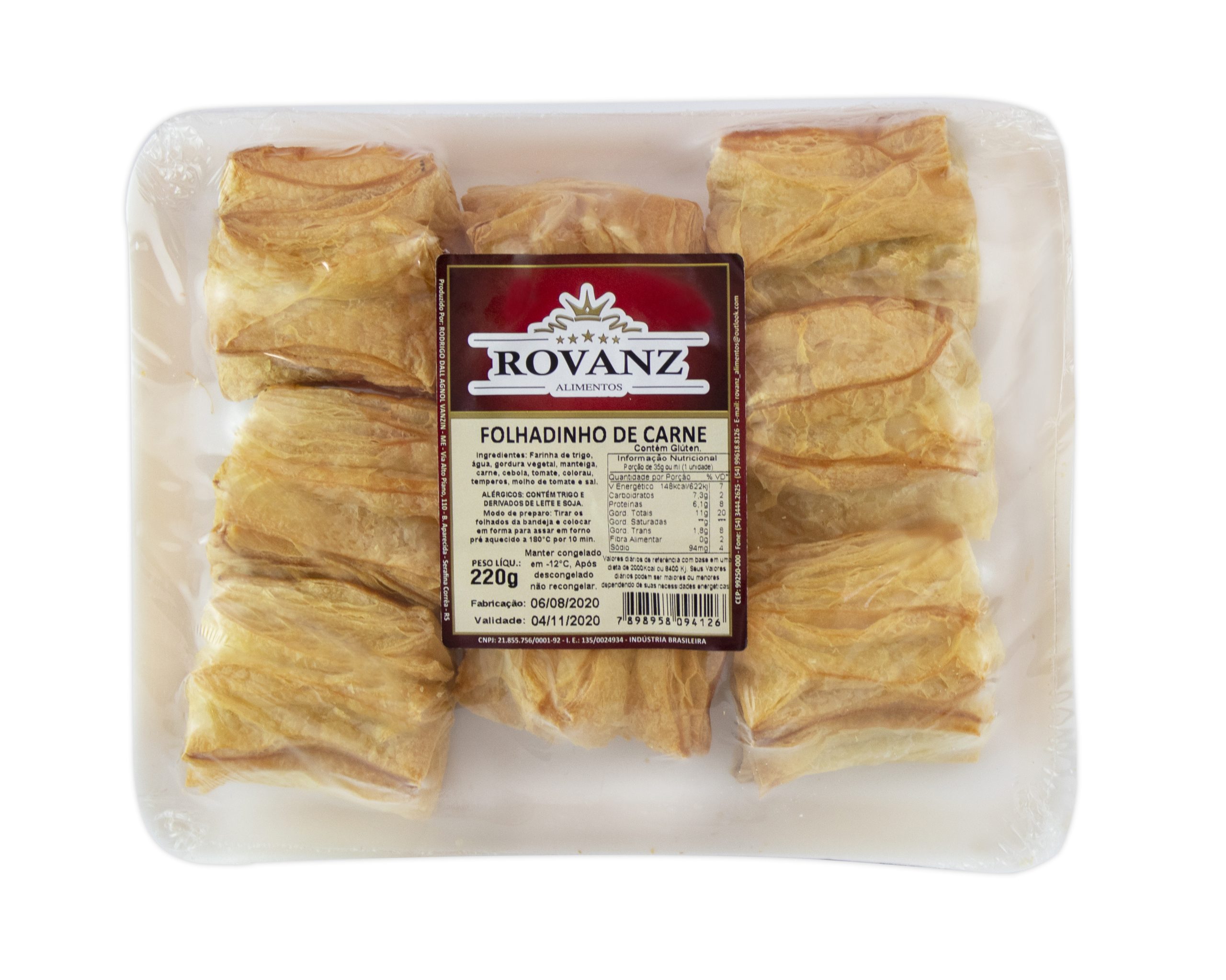| Nome do Produto | : | FOLHADINHO CARNE 220G ROVANZ |